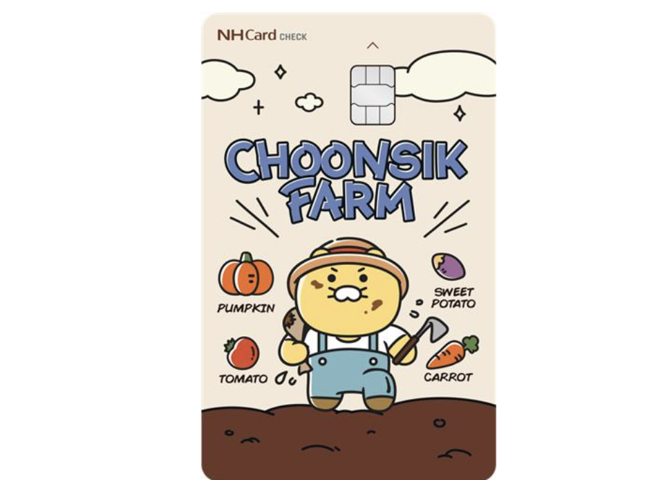 NH농협카드와 카카오가 함께 '스마트농촌·농부' 캐릭터를 사용했습니다. 그 결과 '농협카드 춘식이달달체크카드'가 나왔어요. 이 카드는 두 회사의 세 번째 협업입니다.